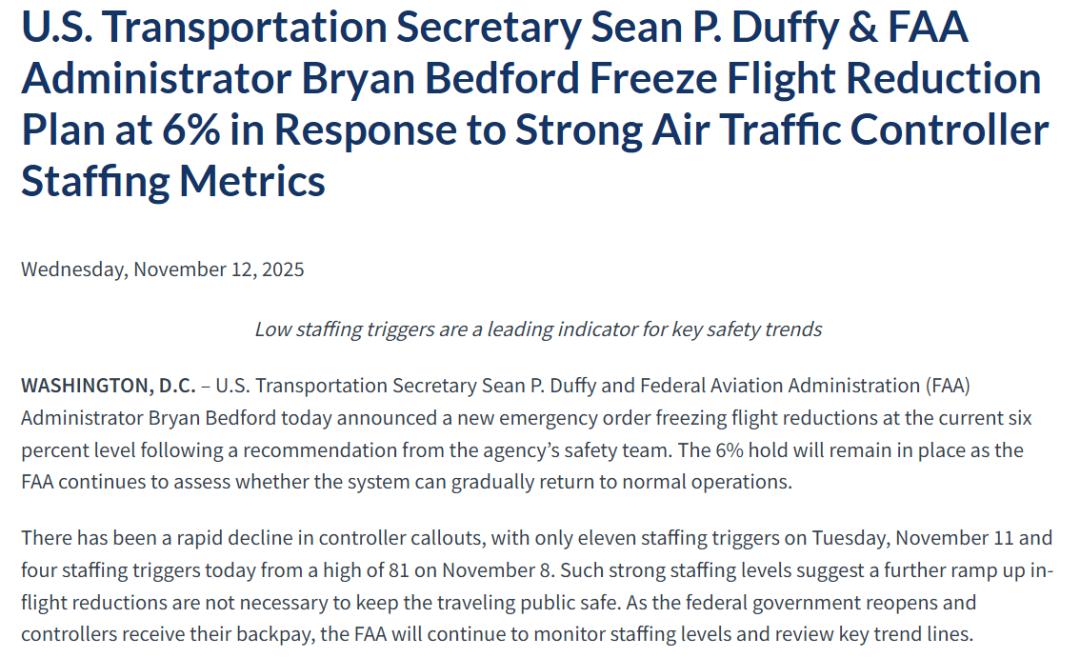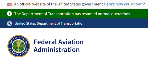 美国交通部DOT和下属美国联邦空管局FAA的网站已经率先更新——说明自己已经恢复工作了。