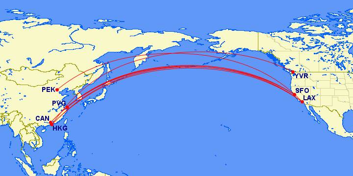 4.更多中美直飞,请看:《中国-北美直飞商业客运航线一览(AA开航洛杉矶-北京,海航成渝直飞纽约)》