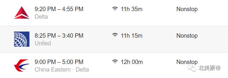 | 出发城市 | 航班号 | 出发时间 | 北美目的地 | 北美到达时间 |