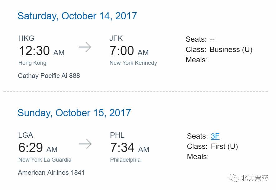 大名鼎鼎的CX888终于放票了,这样可以一路平躺到纽约。当然后面接的LGA-PHL短途航班他并没有坐:因为根据AA奖励票规则,目的地不变是不收150刀改票手续费的条件之一。
