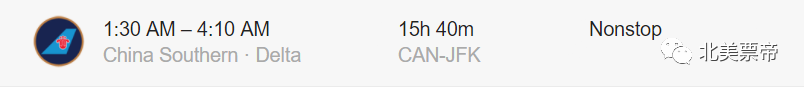 | CZ 399 | 广州CAN | 1:30 AM | 纽约JFK | 4:10 AM | 每日 |