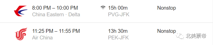 从北京、上海出发,国航、东航均有直飞航班深夜里出发,在深夜到达纽约。还是那句话,非常适合倒时差。但是需要注意的是东航的夜间航班并不是每天都开航,购票的时候还是需要注意。