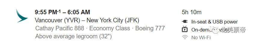 国泰稍微聪明了一点,直接把深夜飞往温哥华的航班接着飞向纽约JFK,经过温哥华经停之后,飞机到达纽约的时间为清晨7点: