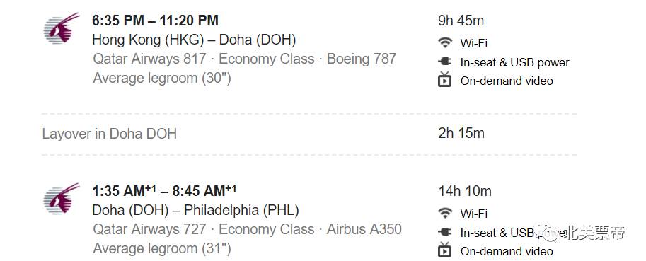 其实票帝这么走也算是给大家提供了一个另类思路,考虑到从中国西行绕到美国东海岸各地并不算特别夸张,不少欧洲或中东航空公司都提供可行的转机选项,比如李博士就考虑过坐卡塔尔航空去往费城,时间还不错,又是787,又是350: