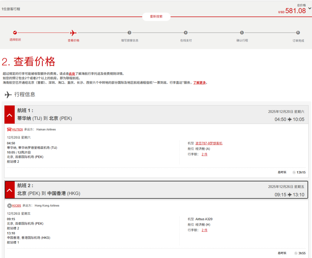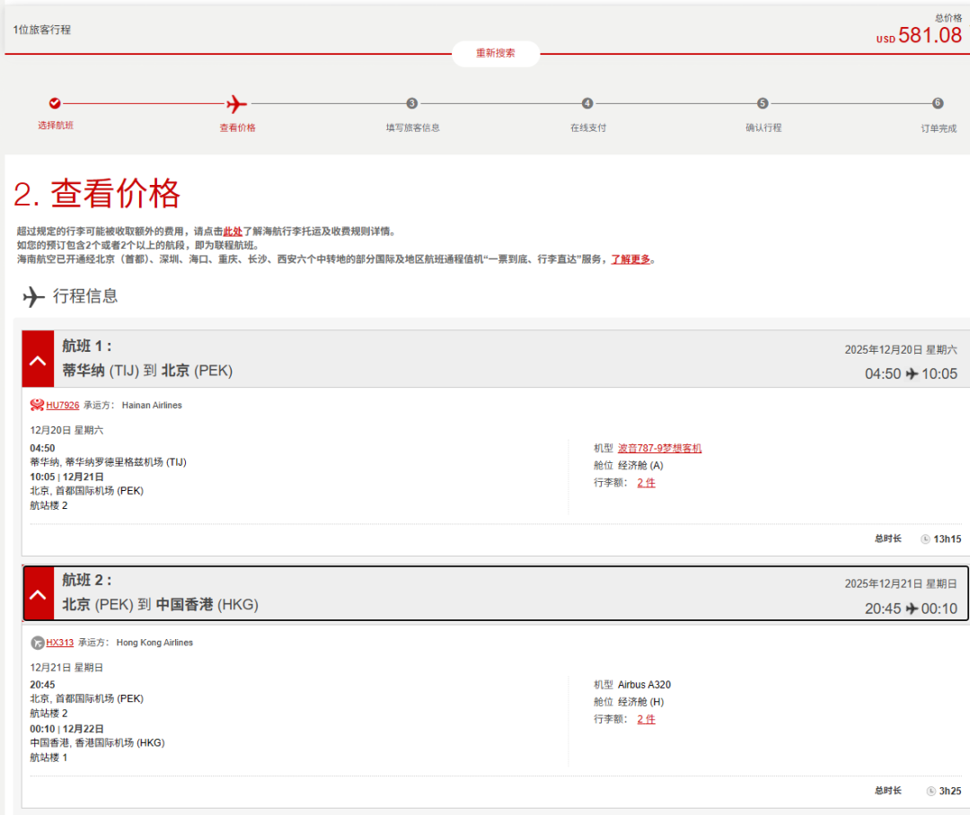 当然,如果你买了单程票,需要在北京休息几天,再去香港~ 行李是可以直挂到北京的~