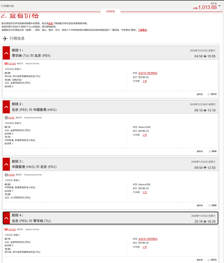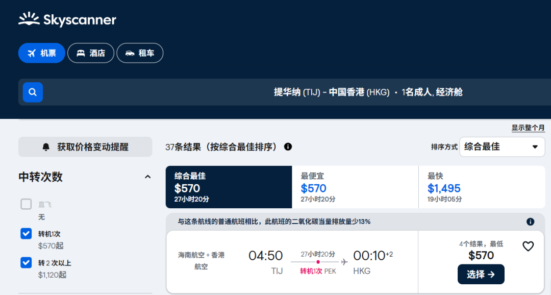 蒂华纳(美国圣地亚哥)-北京首都-香港
