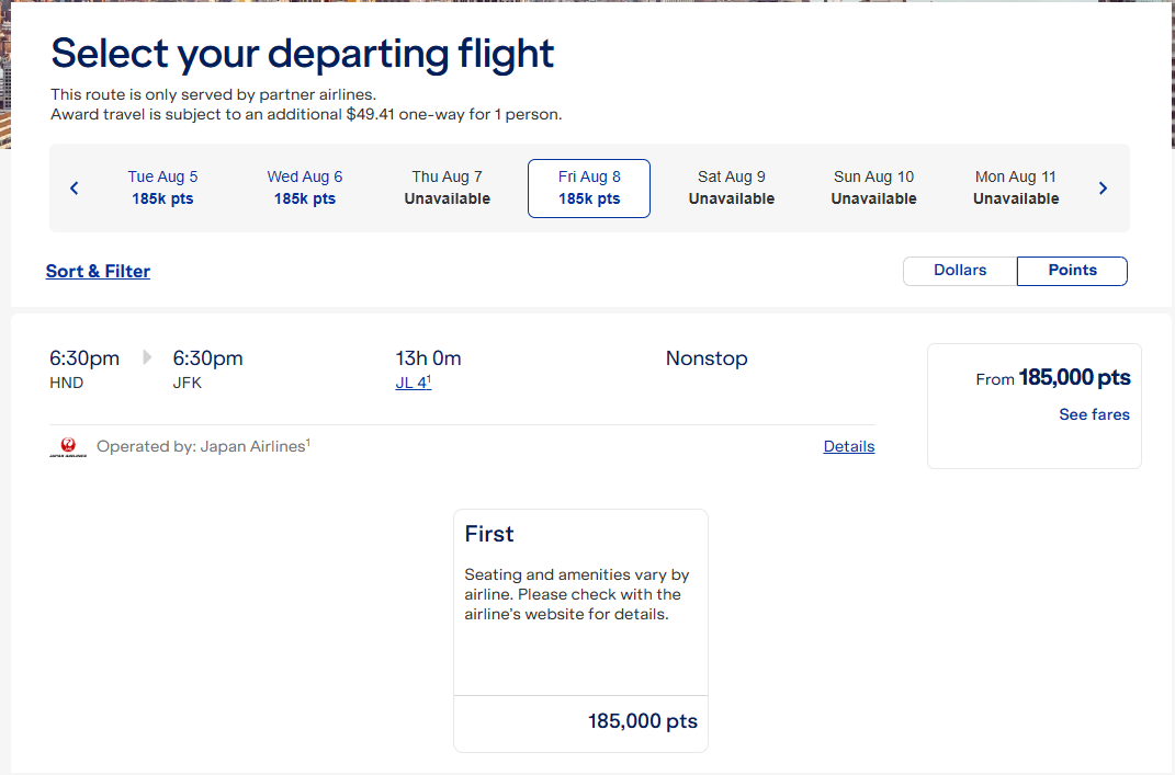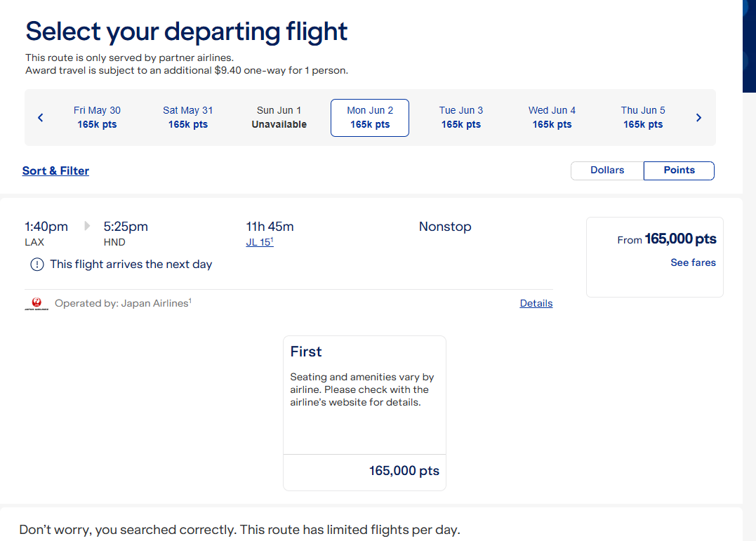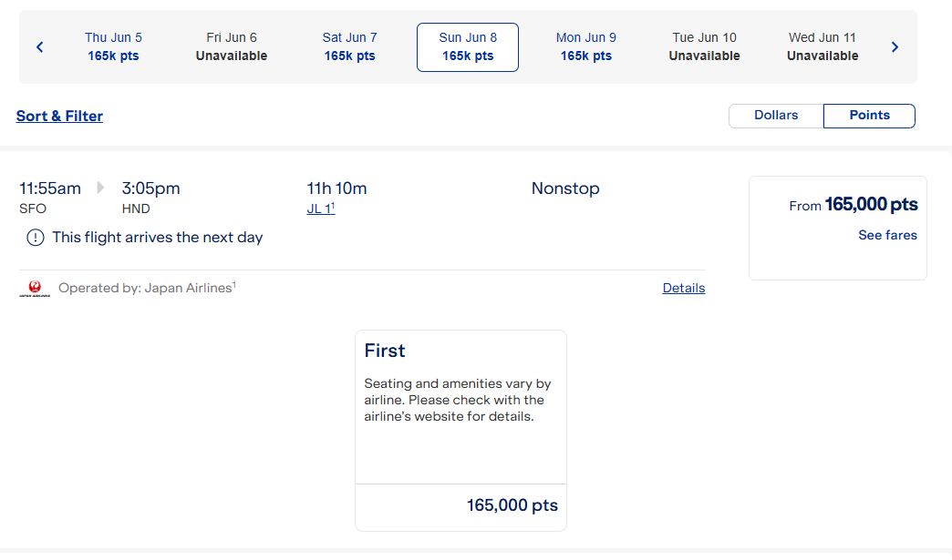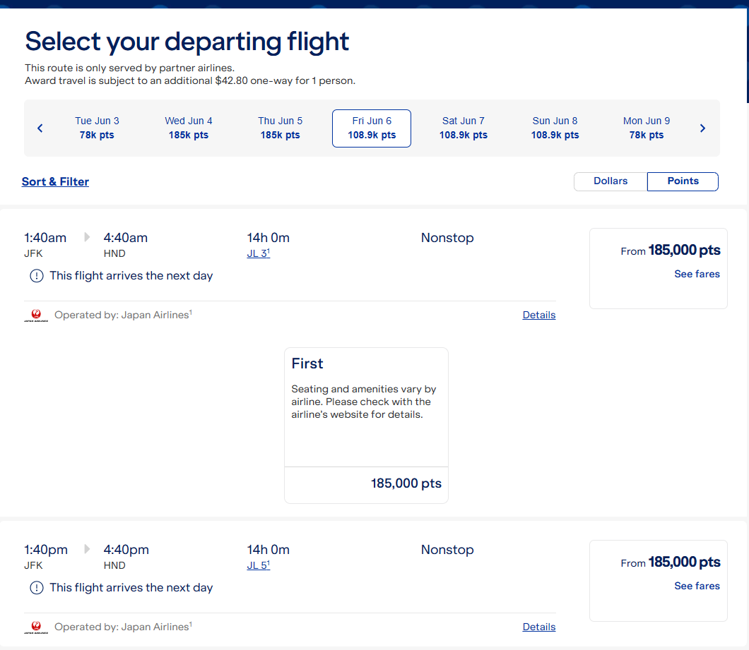 很多乘客在往来中美的时候,都比较希望飞日本航空,尤其是其旗舰机型A35K,一般常规的换法是用AA或AS里程出票,可无奈AA里程要的里程少,但AA里程贵,缺乏银行转点的伙伴;而AS/HA暂时可以靠Amex/bilt等转,但商务舱\头等舱经常看不到,甚至还要用上“歪门邪道”的所谓无中生有 或“结婚离婚”法。 不过,最近,同为AMEX转点伙伴Jetblue开放了日航的兑换,我们来看看有什么亮点?