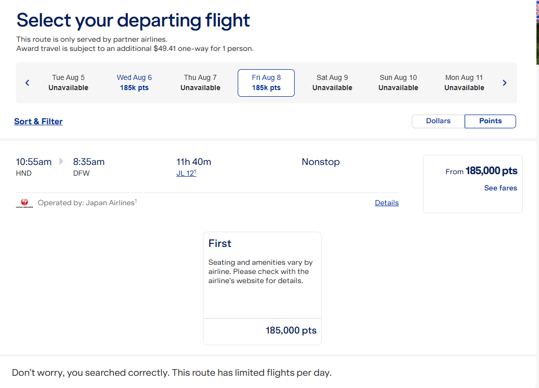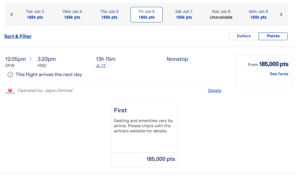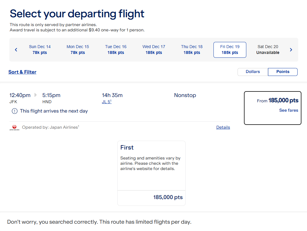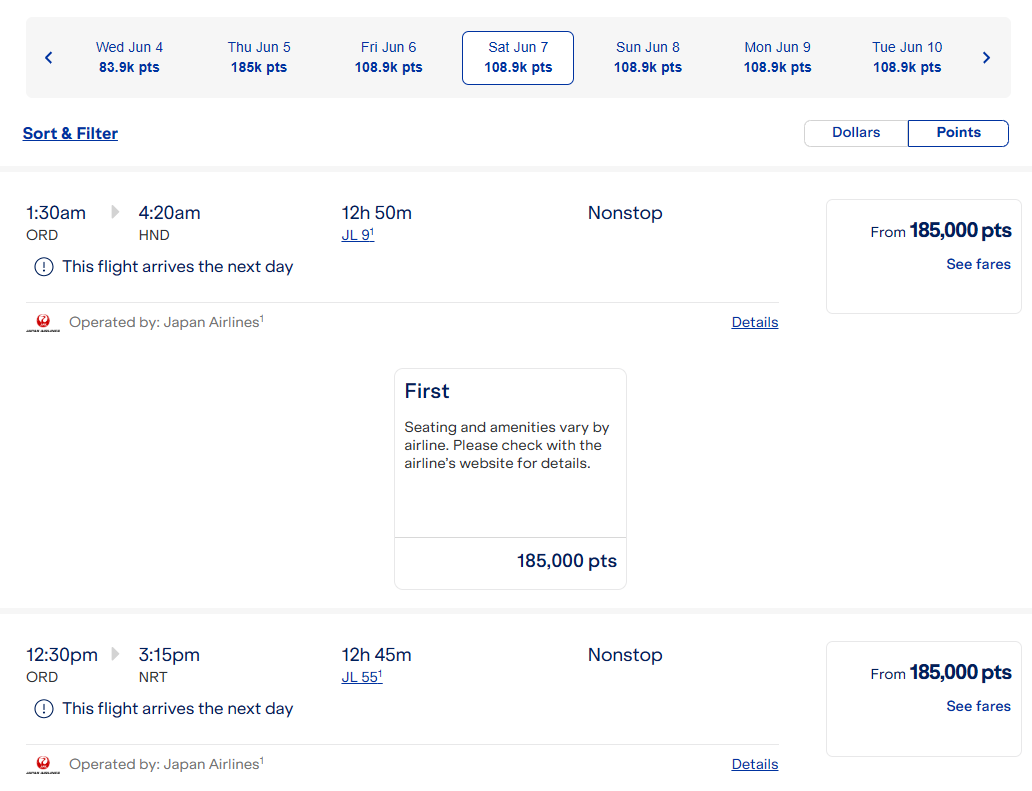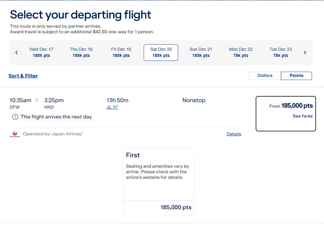 很多乘客在往来中美的时候,都比较希望飞日本航空,尤其是其旗舰机型A35K,一般常规的换法是用AA或AS里程出票,可无奈AA里程要的里程少,但AA里程贵,缺乏银行转点的伙伴;而AS/HA暂时可以靠Amex/bilt等转,但商务舱\头等舱经常看不到,甚至还要用上“歪门邪道”的所谓无中生有 或“结婚离婚”法。 不过,最近,同为AMEX转点伙伴Jetblue开放了日航的兑换,我们来看看有什么亮点?