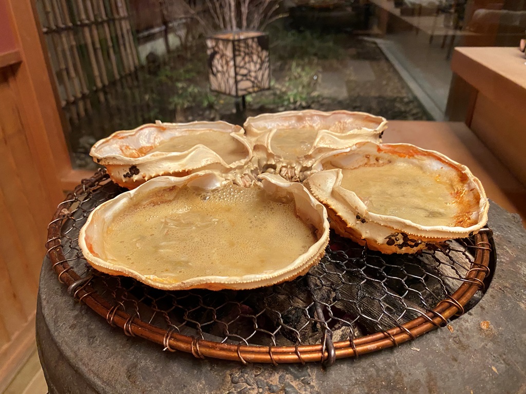 既然是冬天,除了白子、萝卜、牛蒡这些日本冬季日常之外最大的看点就是冬天的京野菜:海老芋,牛蒡和浮萍,和来自间人港的高级松叶蟹了—这是全日本最高级的一种海蟹,只有京都府北部间人港捕捞上来的高级产品才有资格卖到这么贵—事实如此,这一只螃蟹的怀石料理就要卖到550美元一人。