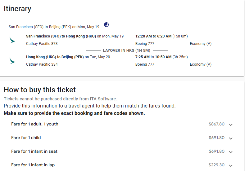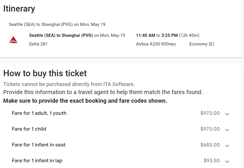 暑假订票旺季已经来临,希望本文可以给各位家长们一些启发。特别注意,一些订票网站可能只有婴儿(0-1岁)和成人(2+岁)两个选项,从而无法体现儿童票(2-11岁)的折扣。此时,可去航空公司官网或联系旅行社出票。特别留意,婴儿票和儿童票的退改签政策可能与成人票不同。