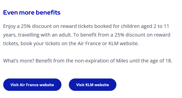 【2岁-11岁乘客】Flyingblue,兑换里程给75折。其余里程计划都是与成人一致