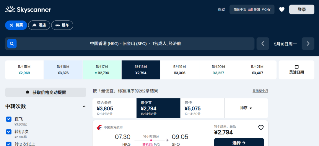 旧金山也有,但东航飞旧金山并不是每天都有,所以票少一些