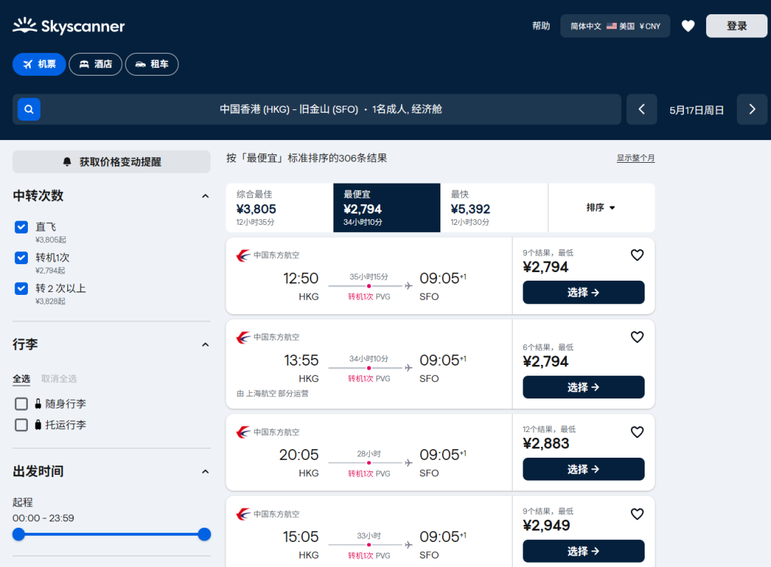 使用阅读原文中有比价链接 (piao.tips/skyscanner)-看到东航相应价格出票。价格可能随时过期,记得关注票帝,早些看到特价。