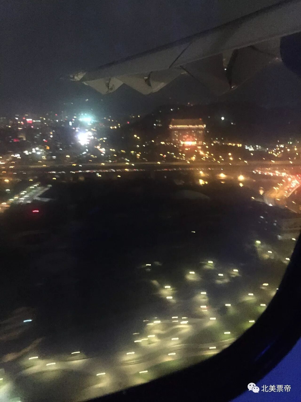 因为要转到台北西南面再由西向东降落松山机场的缘故,飞行时间相对比实际距离73英里长出不少,不过落地时可以欣赏台北夜景,图中即为著名的圆山饭店,据说此处有密道直通松山机场:
