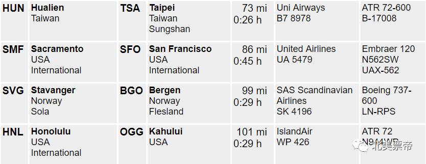 当然以下还整理了一些美国本土的短距离航班供爱卿们参考,说不定哪天一不小心飞到了呢(按规划的算):