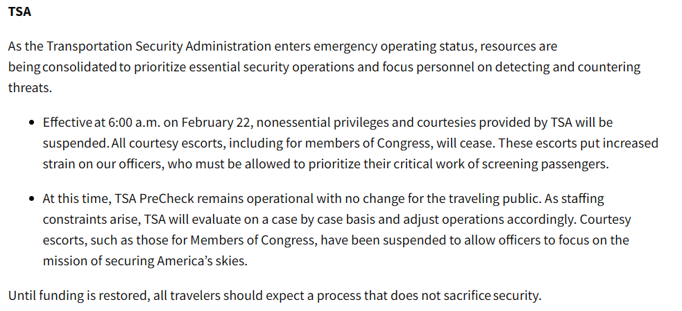 此前,国土安全部亦要求暂停快速安检TSA Pre项目,但后改口。TSA Pre项目正常运行。
