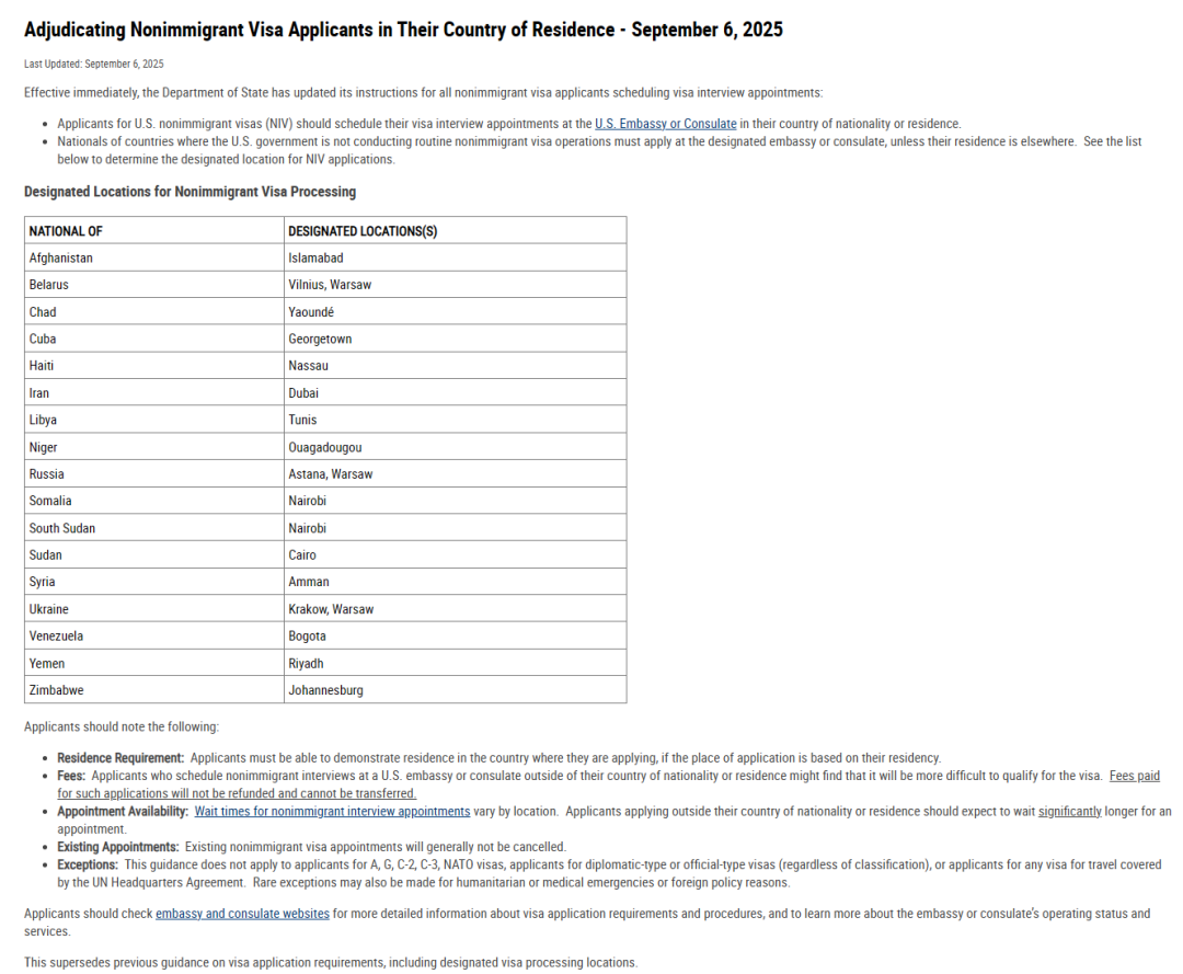 美国签证:第三国申请非移民签证画上句号?哪些人影响最大?