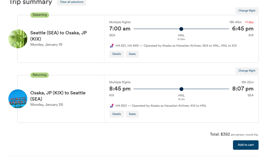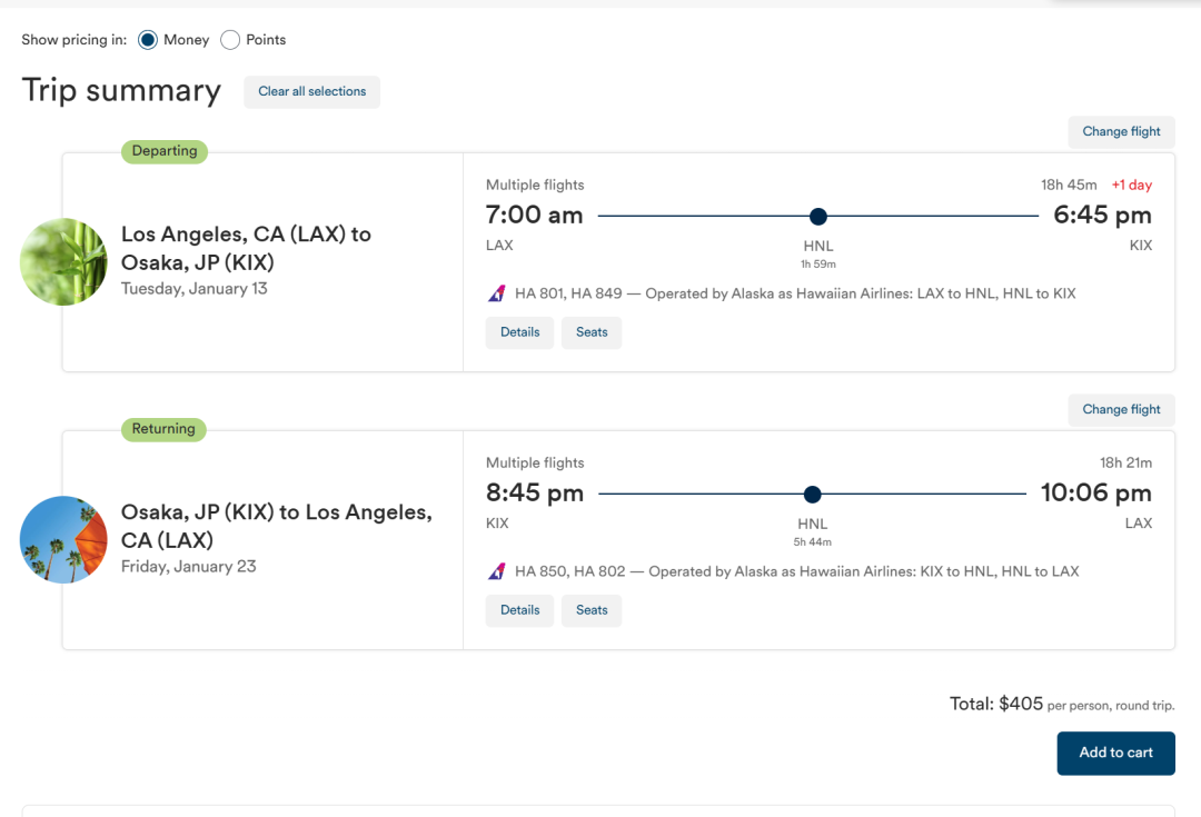 西雅图/洛杉矶-夏威夷-大阪