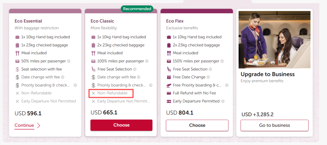 665美金经济舱:免费2件23kg托运行李,1件登机行李+背包等个人物品