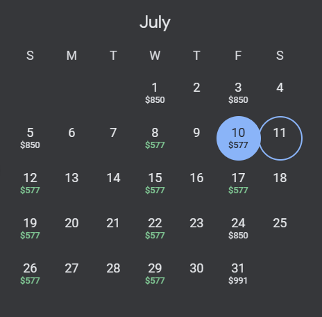 经济舱价格日历