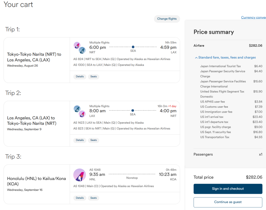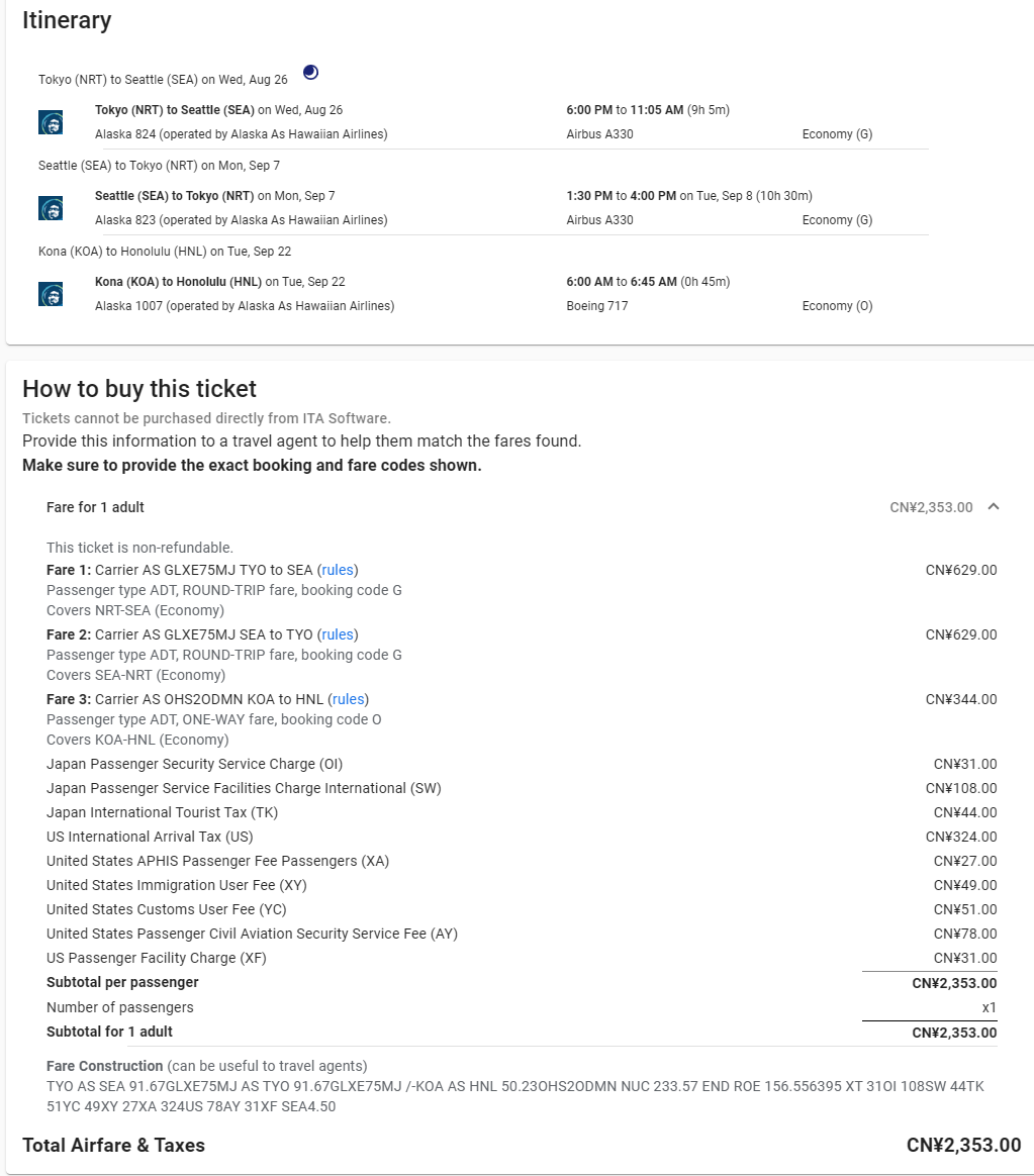 漏油票的要义就是有一个小尾巴:最后一段夏威夷岛间的票(KOA-HNL/OGG-KOA等都可以)。这段您可以自行选择飞与否。