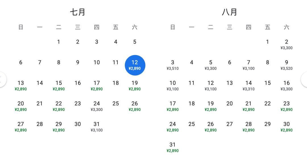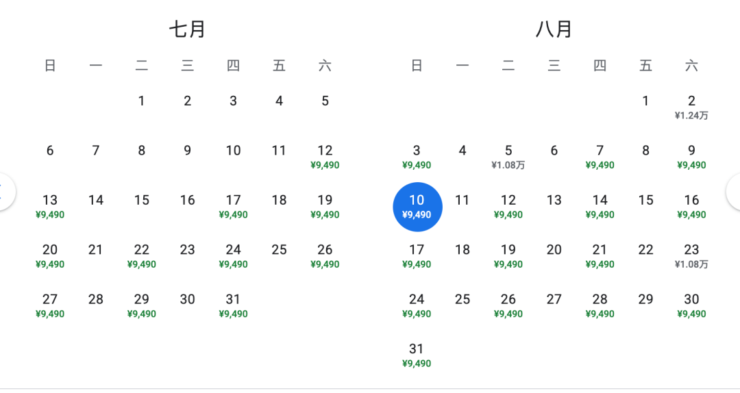 2025年7月12日本航线首航,目前卖到10月下旬换季日,最低价格在9-10月