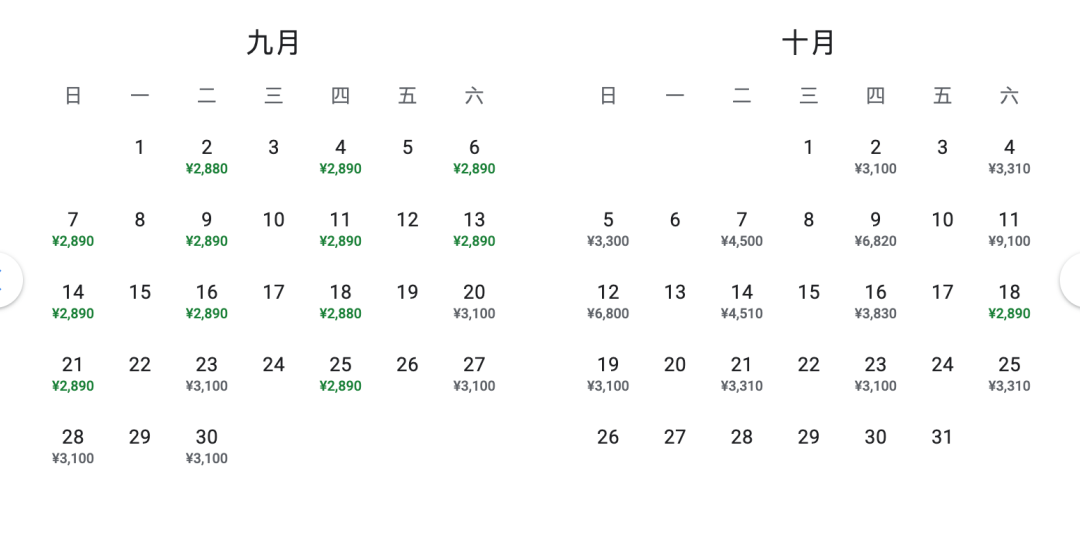 9-10月低价日历