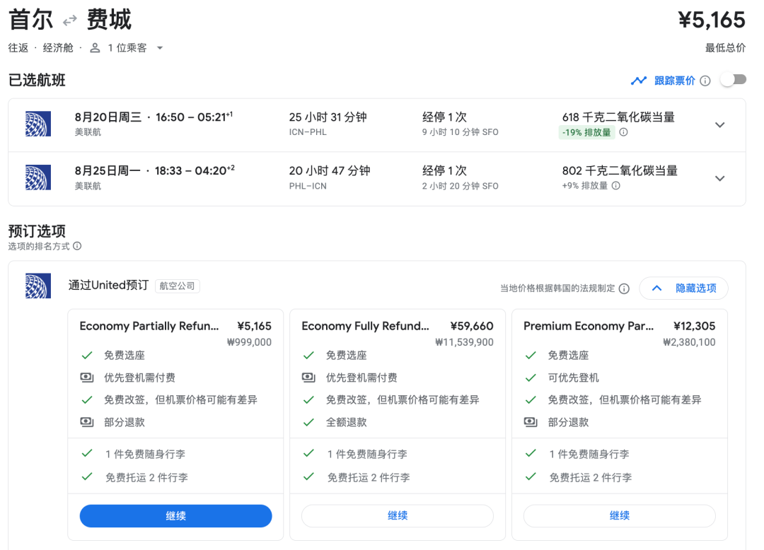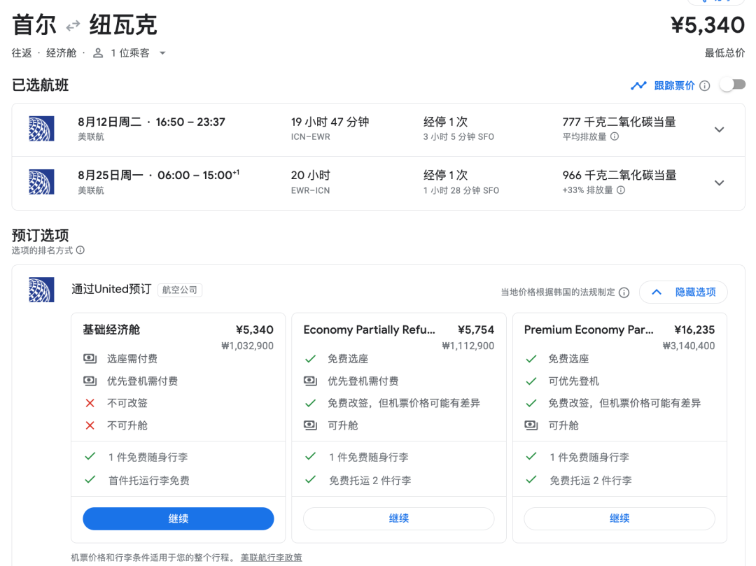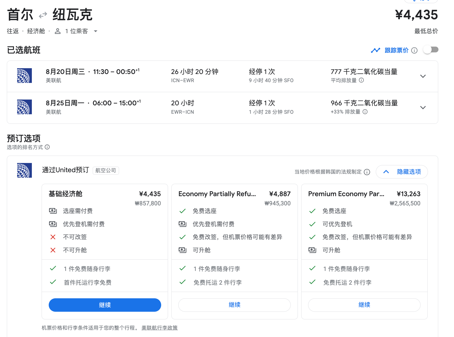 前段时间我们发过美航东京-美国8月旺季低价,今天继续带来“捡漏”8月旺季机票的“地板价”。我们发现,美联航很多淡季常见的价格,都在8月旺季投放在了首尔-美国的航线上,对于美东(尤其是纽约)人民尤其友好。没错,从国内出发可能单程就大几千的旺季机票,一转战首尔出发,瞬间就含税4400多人民币搞定往返。