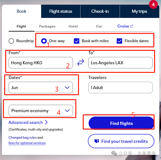 (上述以出发城市为香港-洛杉矶为例,实际可按照自己的城市)