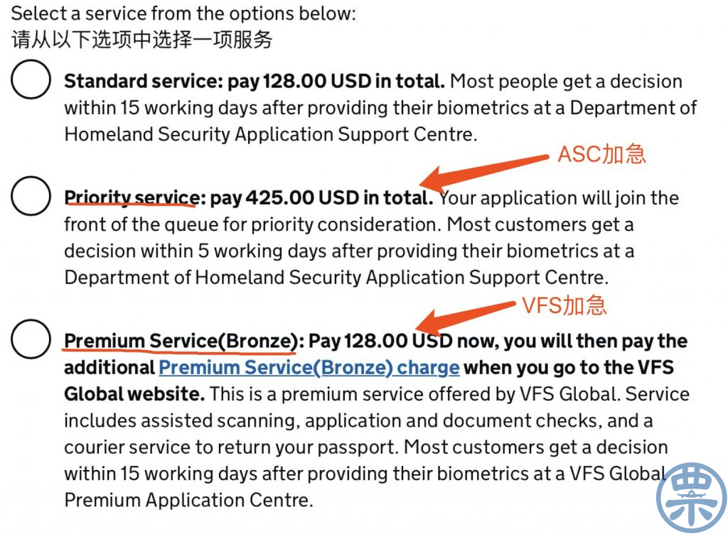 • 购买加急的,但没有把加急(priority service)收据一同放进去,或者事后交的