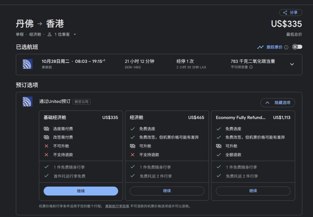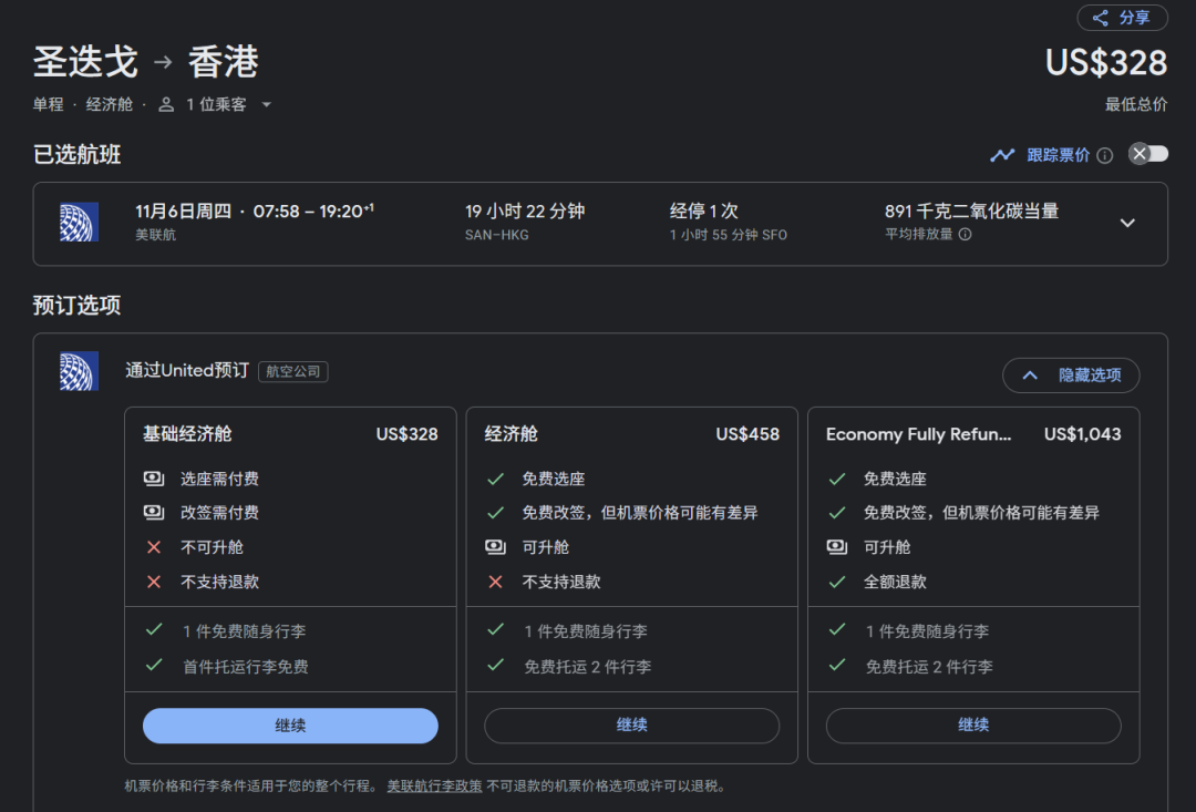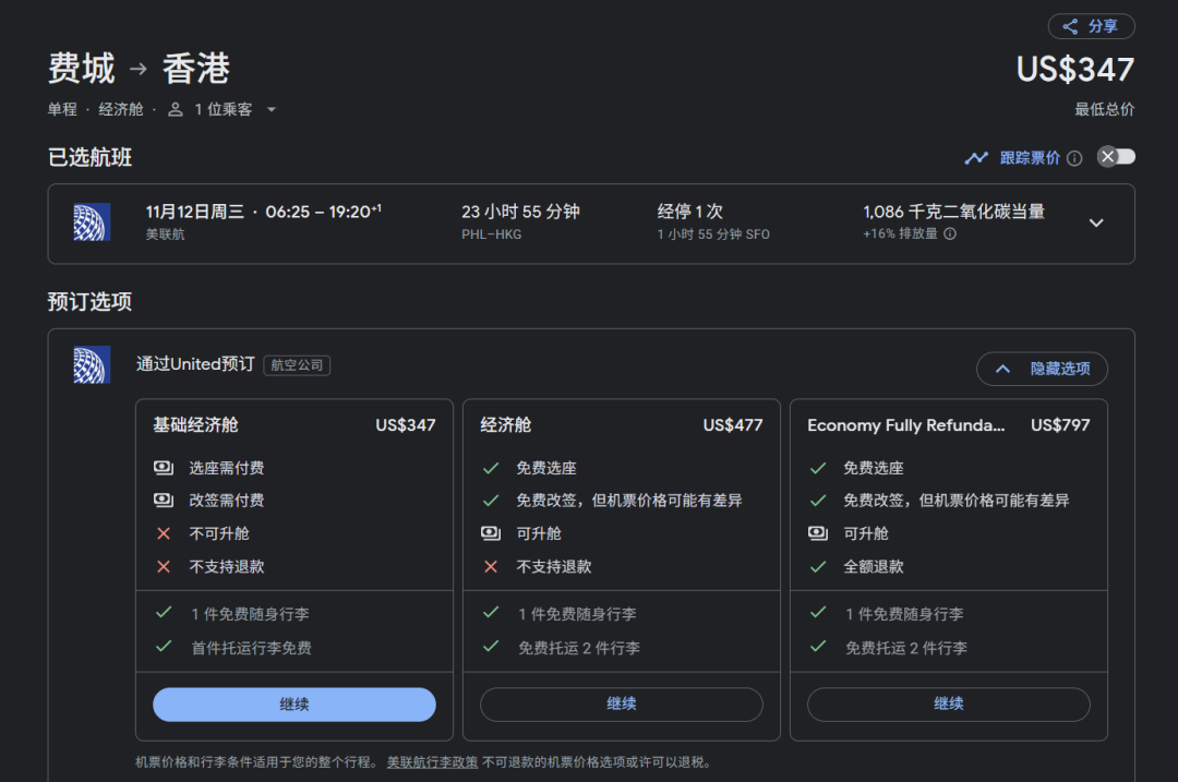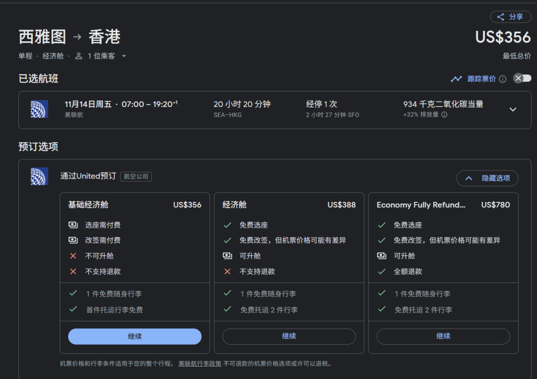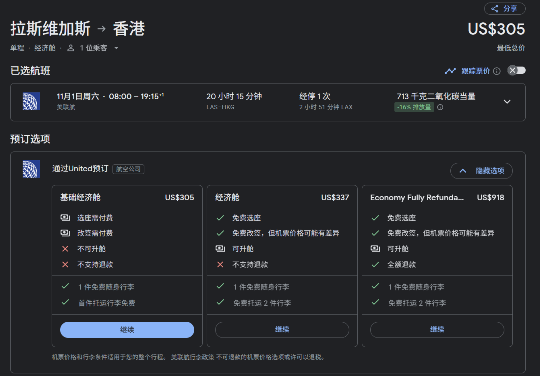 若需要使用银联优惠,需要在美联航中国或香港网站购票。(下面会说)