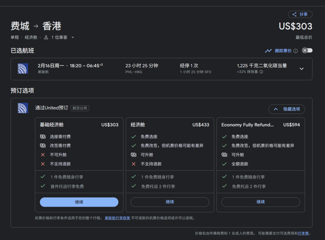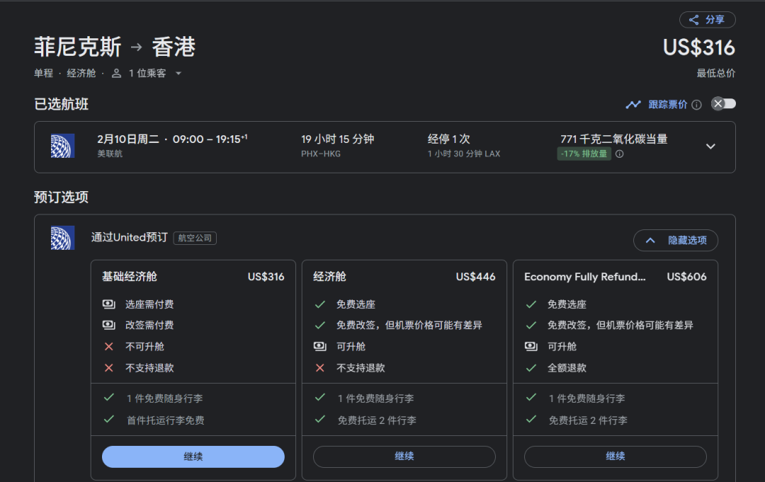 涵盖了美国多地,除了美西之外,更多的是中部、东部和南部等飞亚洲航班不多的城市。本身能够一停,从美国直飞香港且不要30+小时的转机,就已经很难得,而美联航每天4个航班到香港,涵盖早晚,提供了低价票更多,也让大家更容易大家转飞机、高铁、汽车等回内地(落地香港后7天内回内地,不需要港澳通行证)。