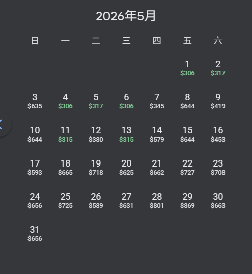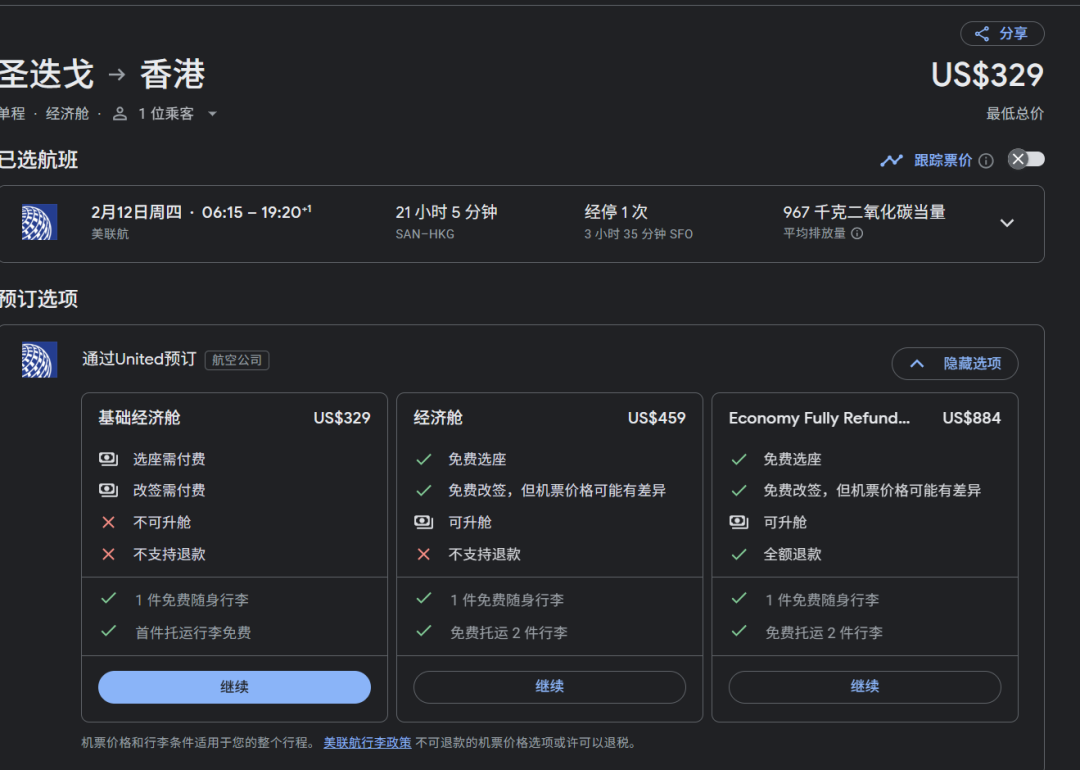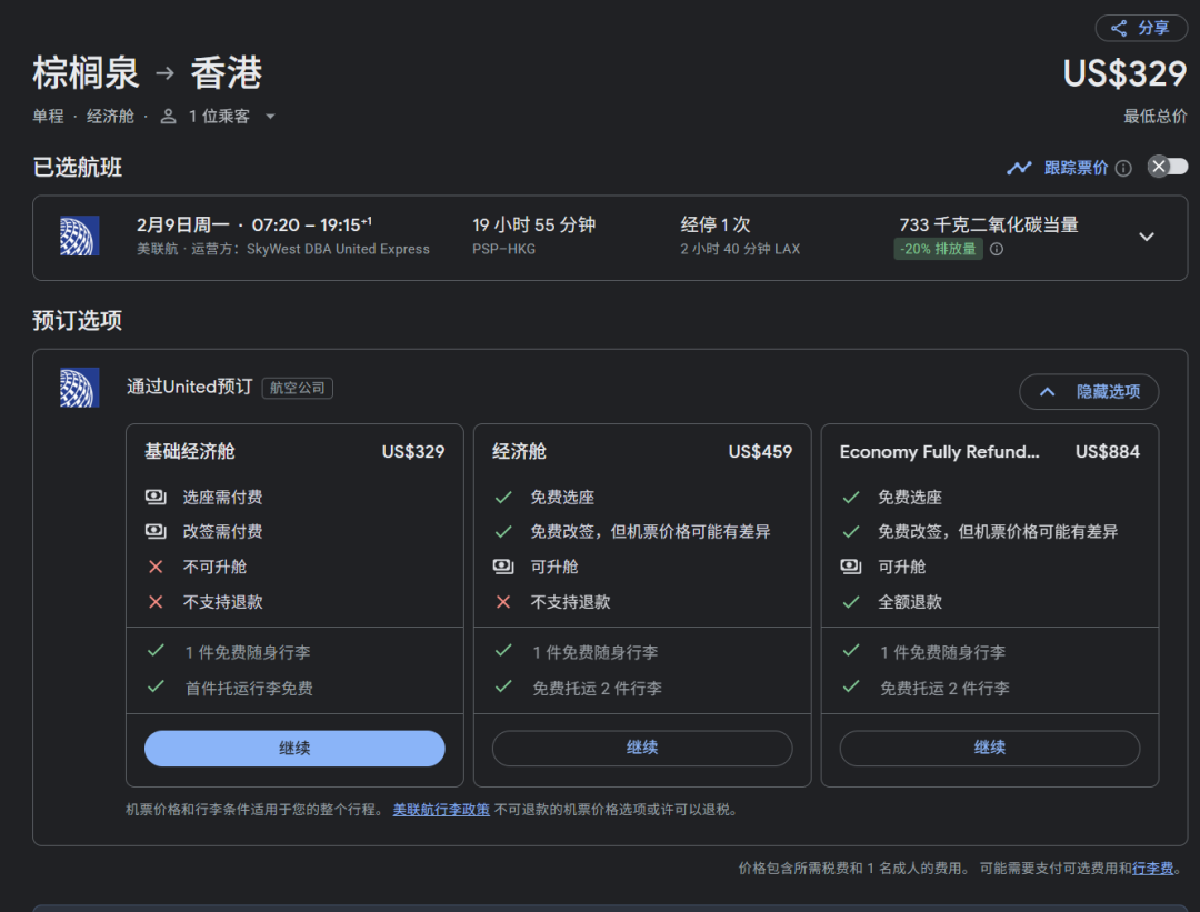 没想到棕榈泉也有惊喜,飞香港也是329美金