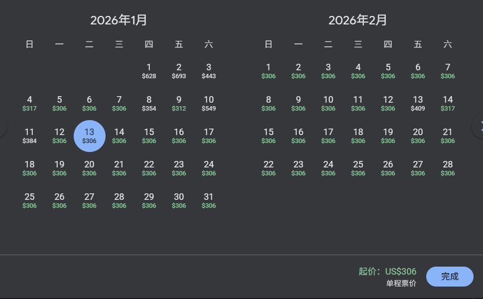 基础经济舱含税303美金,配合银联优惠,实付253美金