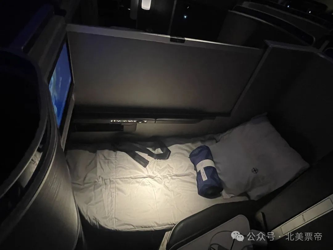 【美联航用于中美航线上可平躺的北极星商务舱, 同时在地面上还可以进入北极星商务舱休息室,享受fine dining(区别于自助餐)等服务】
