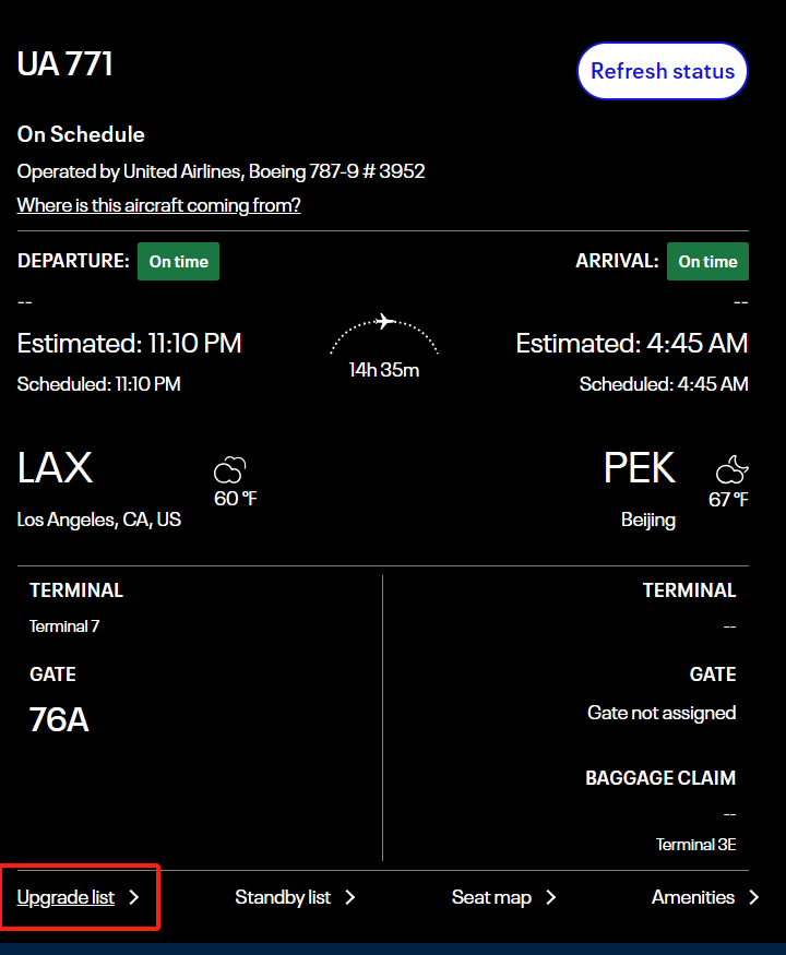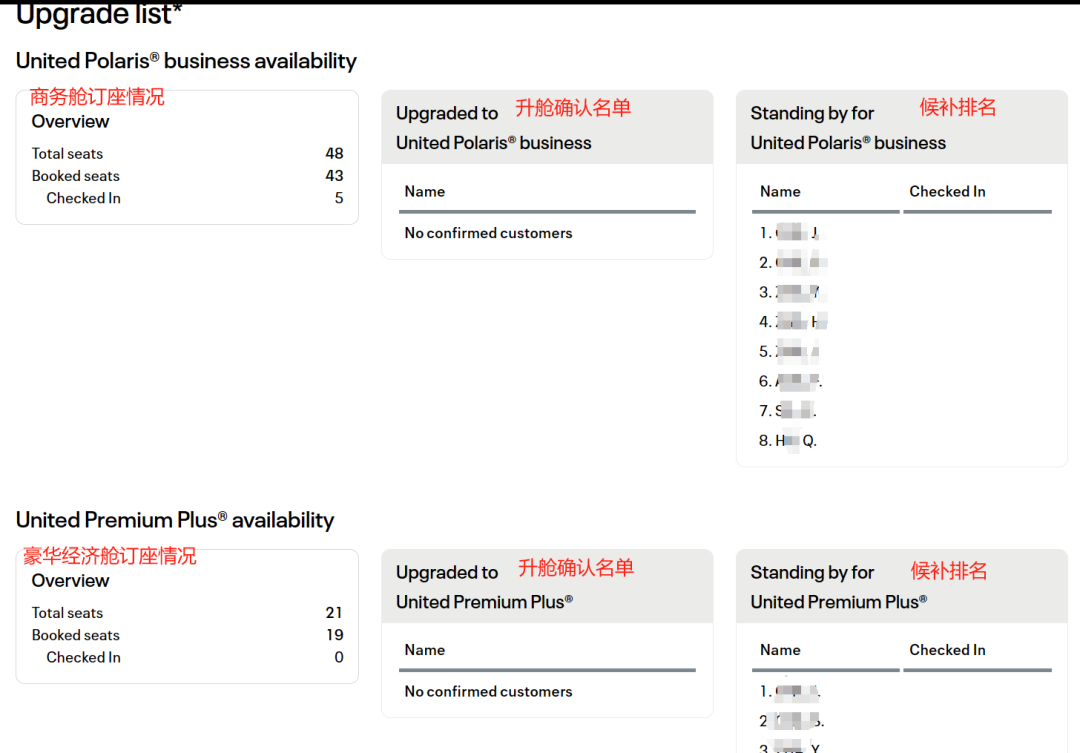 提前约2天开始,你可以在美联航的app/网站 -航班状态 -找到航班后,查看剩余座位及升舱排名~