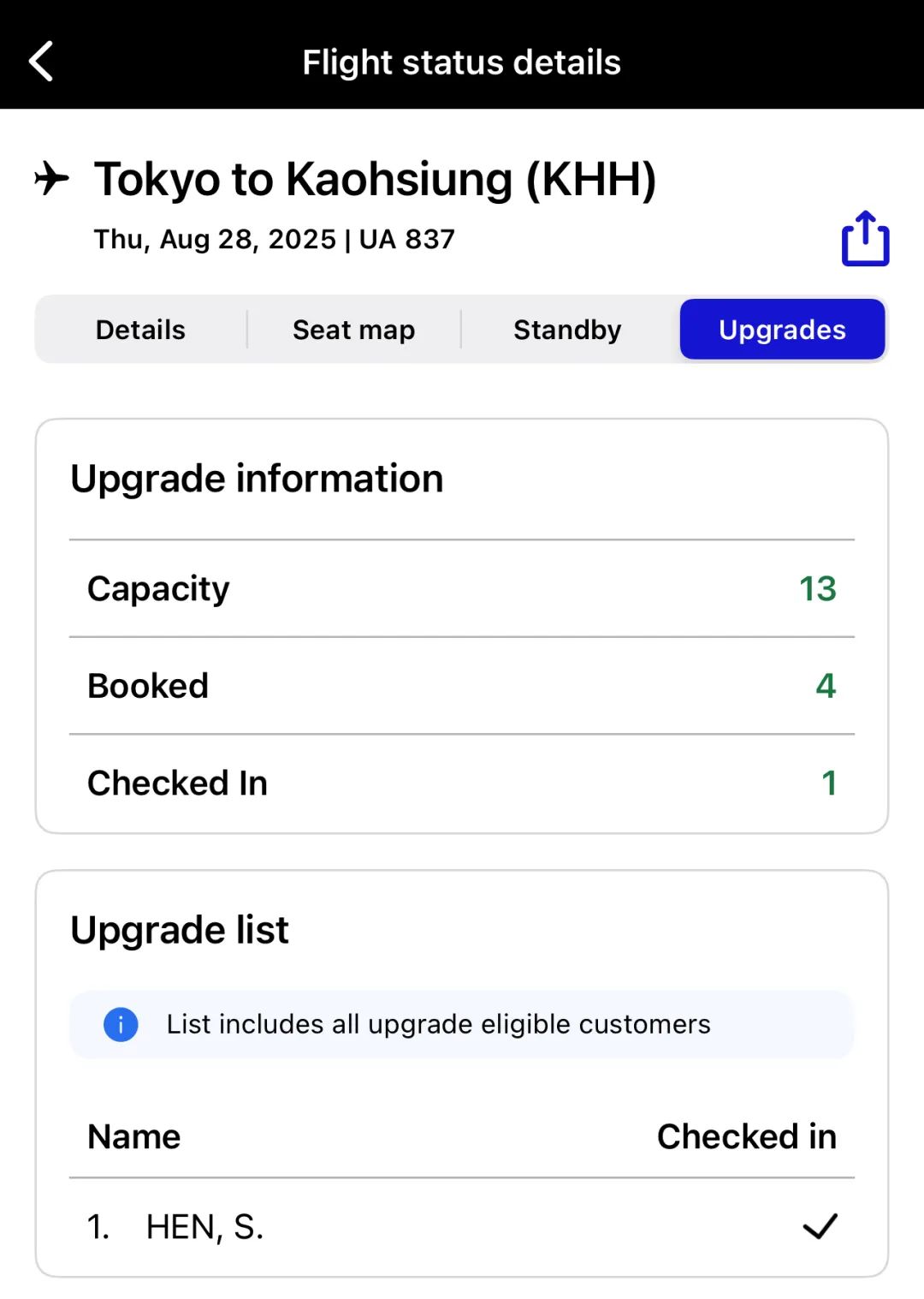 那更值得体验一下独特的东京成田-高雄航线了!作为737-800执飞的中短途航线,即使远在大洋彼岸,美联航依然允许该航线像美国国内航班一样提供高卡会员免费候补升舱,并且根据已经运行的航班的经验,商务舱上座率很低,乘客中高卡会员很少,升舱的成功率远高于大部分美国国内航班。