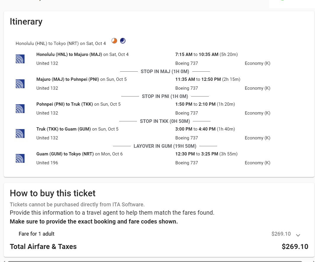 美联航在太平洋上有一条独一无二的航线,用着窄体的737,从夏威夷出发,中间停靠太平洋上的马绍尔群岛、夸贾林环礁、密克罗尼西亚等数个小岛后,最终耗时13-16小时,抵达关岛——这条跳岛航线一直在飞友圈中作为“神一般”的存在,也有不少人以飞这条航线为荣~【票帝也飞过】