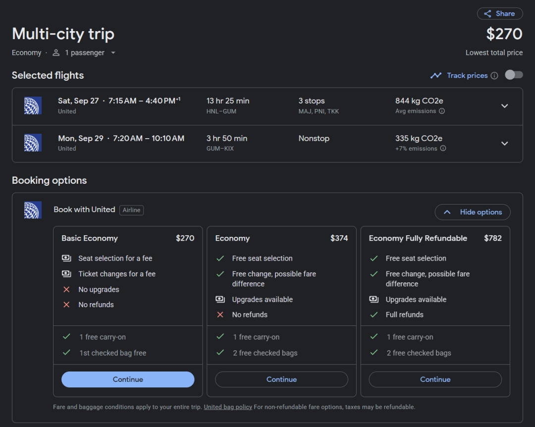 若要在官网购票的话,建议从Google flight搜好航班后,点过去,以免官网误判(多加500美金)。